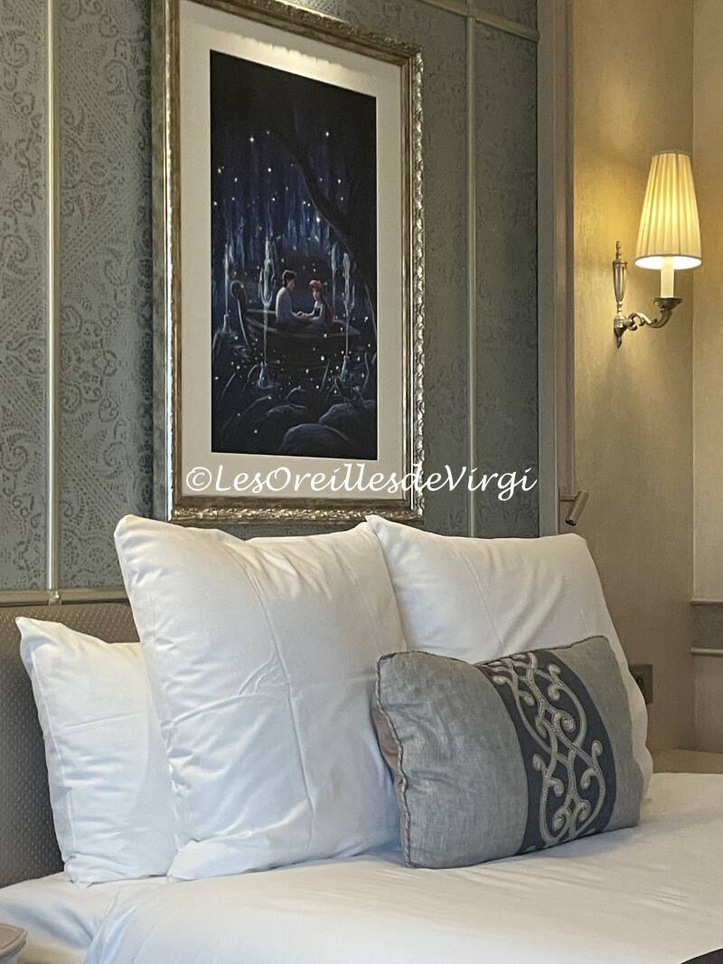 7 jours avant l'arrivée à l'hôtel, vous avez la possibilité (sous réserve de disponibilité) de signaler votre princesse préférée. Nous avons eu la joie d'avoir le thème préféré de mon fils (Ariel, la petite Sirène). 2 magnifiques tableaux dans la chambre.